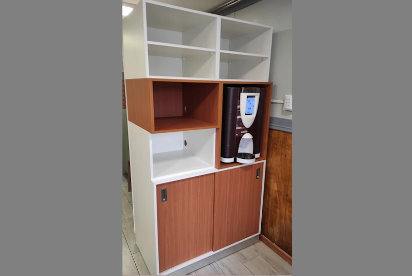 Mueble diseñado para cafetera eléctrica, cada compartimento fue pensado para una utilidad específica, optimizando el área de trabajo y almacenamiento, los colores pueden ser a elección, y se pueden modificar las ubicaciones de los espacios de trabajo.