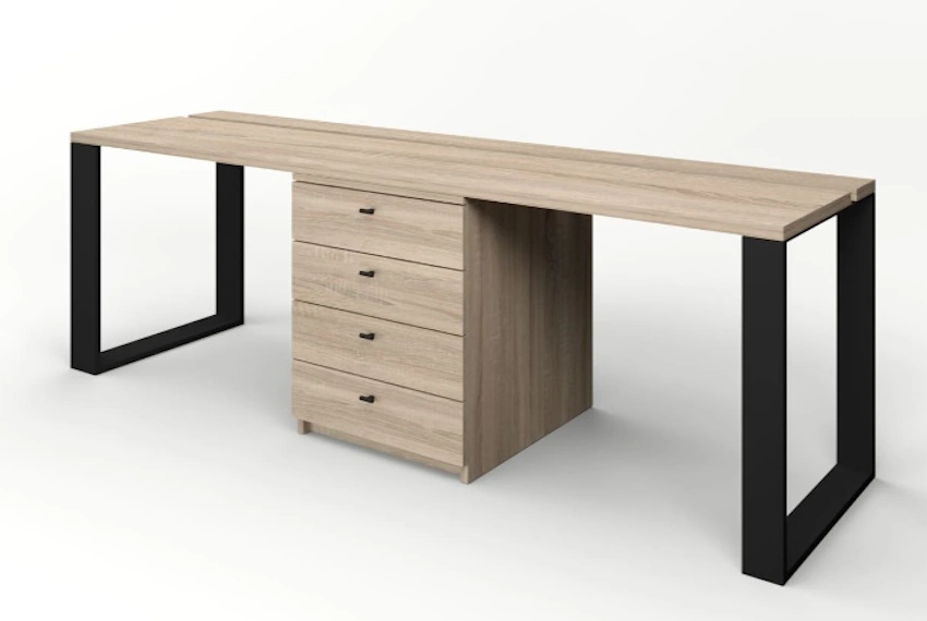 El Escritorio-Clásico Doble ofrece una solución moderna y práctica para espacios de trabajo compartidos o amplios. Su diseño elegante con líneas rectas combina una estructura robusta con una superficie amplia en acabado de madera natural, ideal para realizar tareas, trabajar con la computadora o proyectos en equipo. Con un módulo central de cajones, brinda un equilibrio perfecto entre estilo y funcionalidad.
